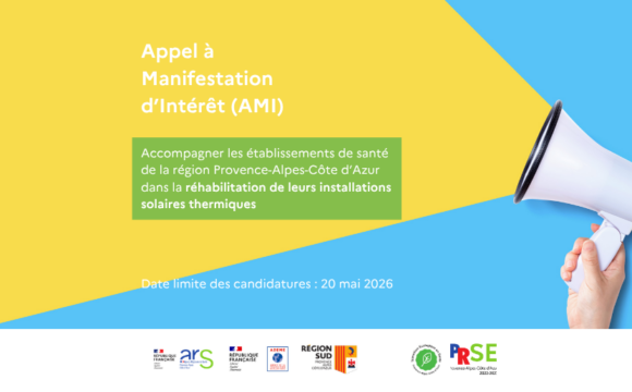 AMI solaire thermiqueL’ARS Paca, la Région Sud et l’ADEME Paca lancent un Appel à Manifestation d’Intérêt (AMI) pour identifier et accompagner les établissements de santé disposant d’installations solaires thermiques à rénover ou moderniser. Cet AMI s’adresse prioritairement aux établissements de santé et établissements médico-sociaux (public, privé, associatif) et reste ouvert aux établissements de type résidence autonomie ou résidences sénior de la région Provence-Alpes-Côte d’Azur. Les candidats devront être des établissements du secteur de la santé disposant d’installations solaires thermiques en exploitation (avec problème de fonctionnement/de performance/de panne partielle…) ou à l’arrêt situées dans la région Provence-Alpes-Côte d’Azur. Les établissements intéressés peuvent candidater jusqu'au 20 mai 2026.